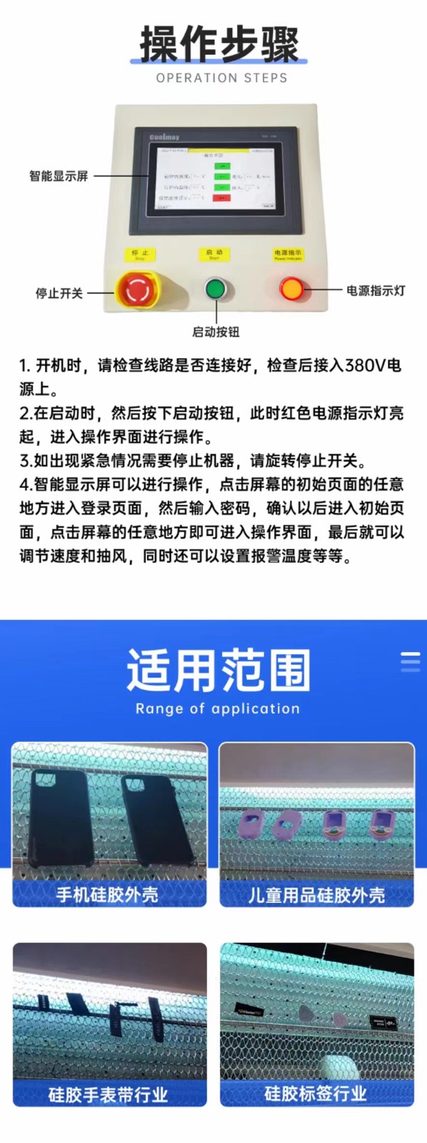 采用無極可調技術,具有能量可調,一鍵待機功能,節約不必要的能耗開支