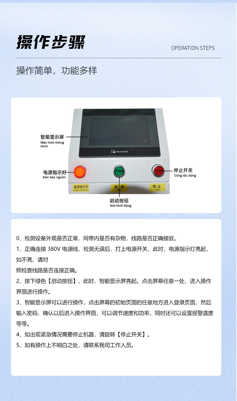 采用無極可調技術,具有能量可調,一鍵待機功能,節約不必要的能耗開支